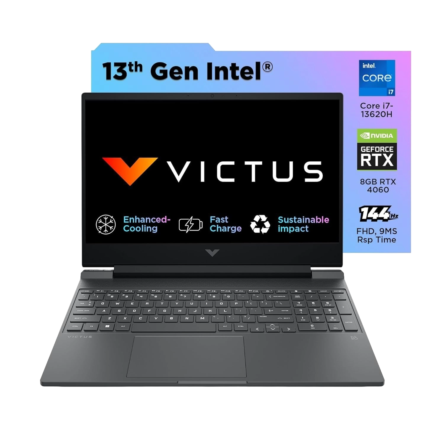 HP Victus Gaming, 13th Gen Intel Core i7-13620H, 16GB DDR4 Ram, 512GB SSD, 8GB NVIDIA RTX 4060, 15.6-inch(39.6cm), 144Hz, IPS, Backlit KB, Audio by B&O, (Win 11, Office 21, Silver, 2.29kg) fa1276TX