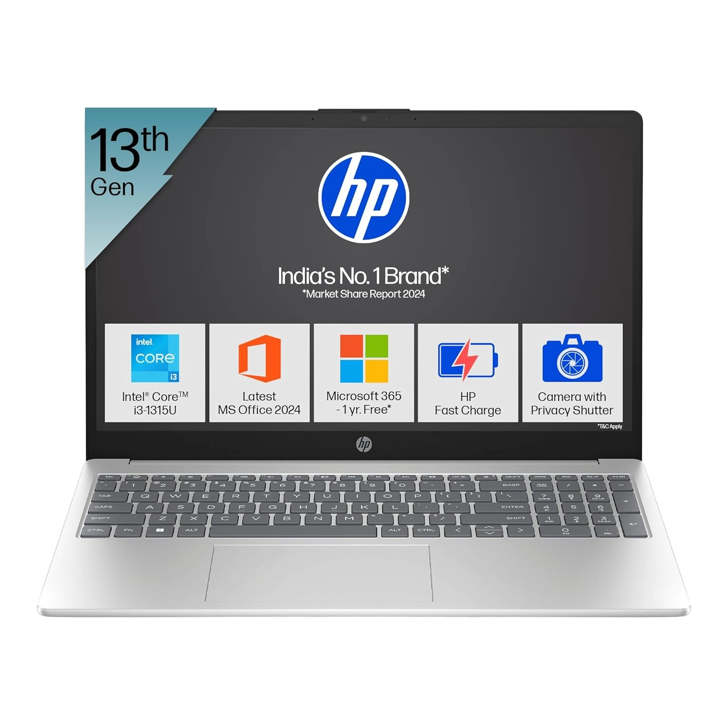 HP Laptop 15, AMD Ryzen™ 5 7520U, 15.6-inch (39.6 cm), FHD, 8GB LPDDR5, 512GB SSD, Dual Speakers,MSO, Windows 11,Natural Silver, 1.69 kg, 15s-fc0155AU