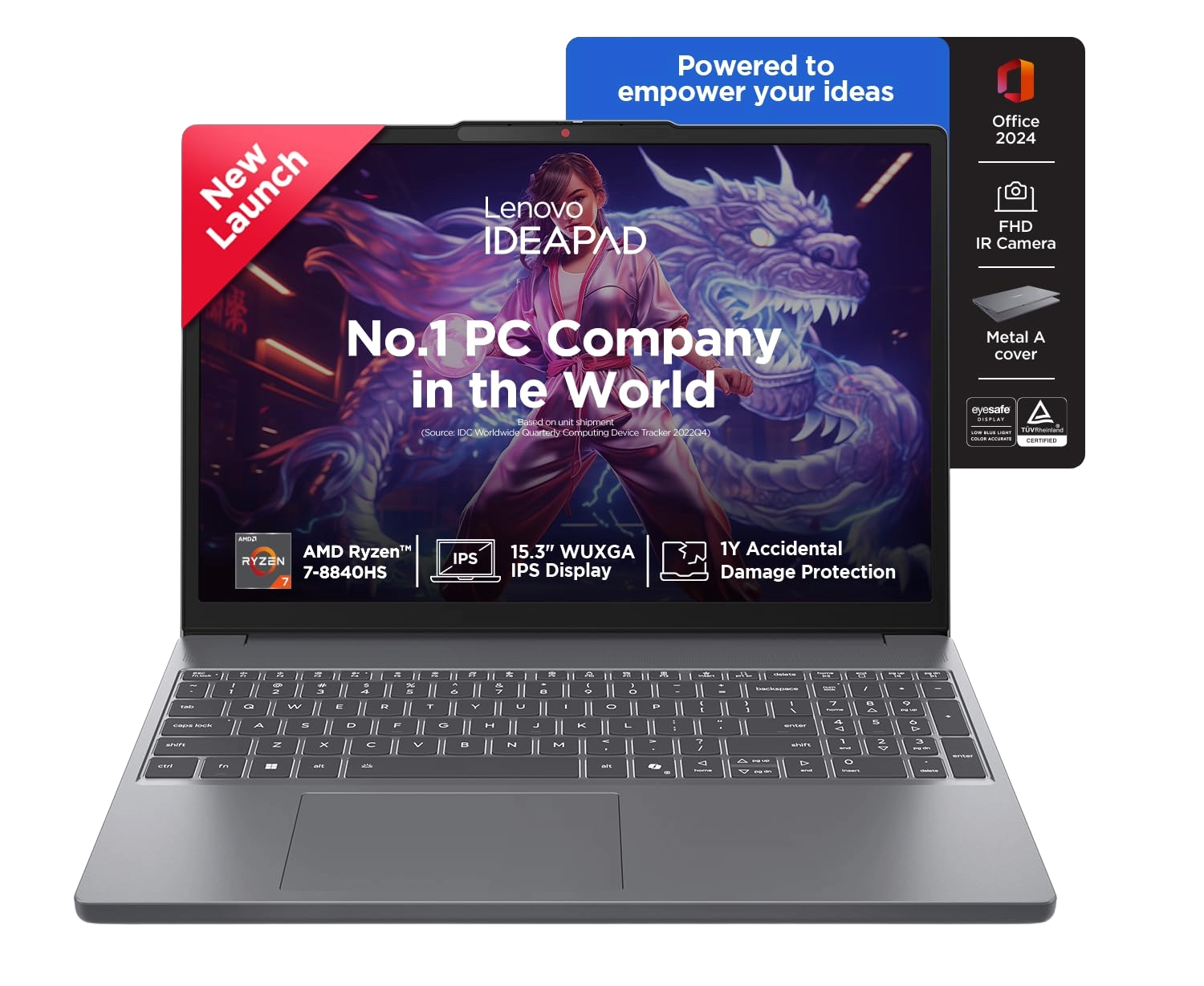 Lenovo IdeaPad Slim 3 AMD Ryzen 7 8840HS 15.3 inch (38.8cm) WUXGA IPS Laptop (24GB RAM/1TB SSD/Windows 11/Office Home 2024/Backlit Keyboard/1Yr ADP Free/Grey/1.6Kg), 83KA004TIN