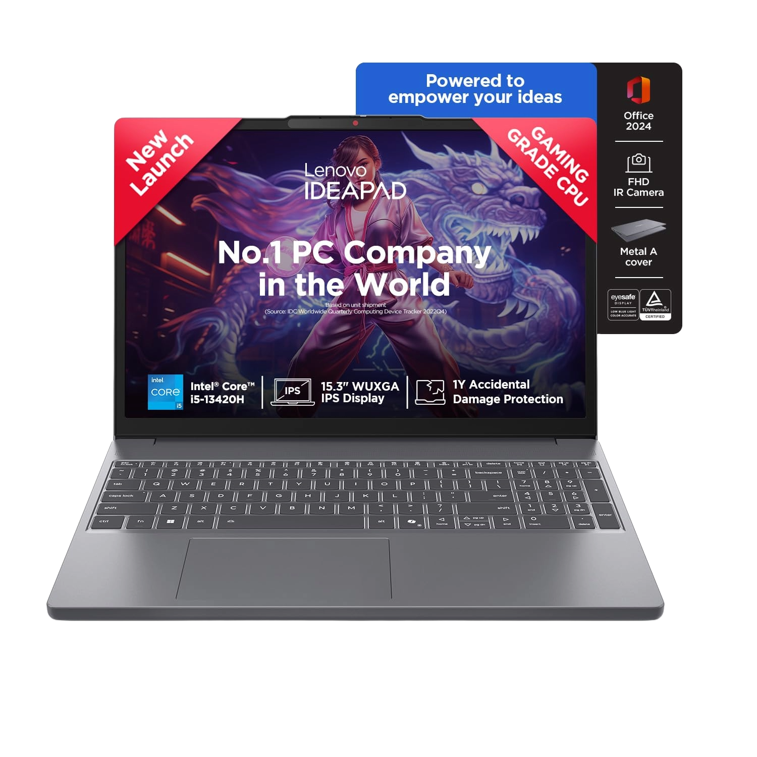 Lenovo IdeaPad Slim 3 13th Gen Intel Core i5-13420H 15.3 inch (38.8cm) WUXGA IPS Laptop (24GB RAM/1TB SSD/Windows 11/Office Home 2024/Backlit Keyboard/1Yr ADP Free/Grey/1.6Kg), 83K100PLIN