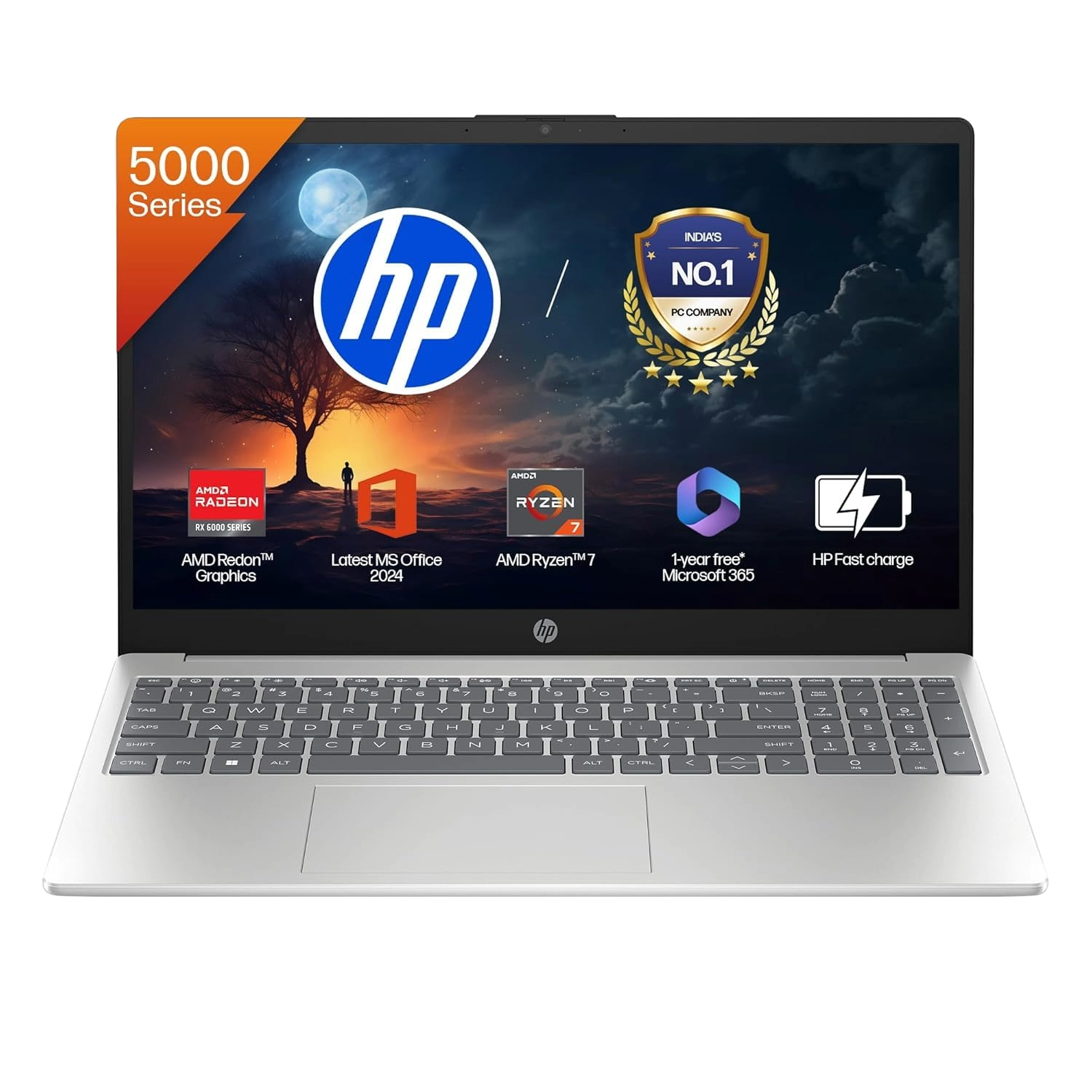HP 15, AMD Ryzen 7 5825U, 16GB DDR4, 512GB SSD, 15.6-inch(39.6cm) Anti-Glare, FHD, Radeon Graphics, Backlit KB, 1080p HD cam (Win11, M365 Basic(1yr),Office Home24, Silver, 1.69kg) fc0476AU