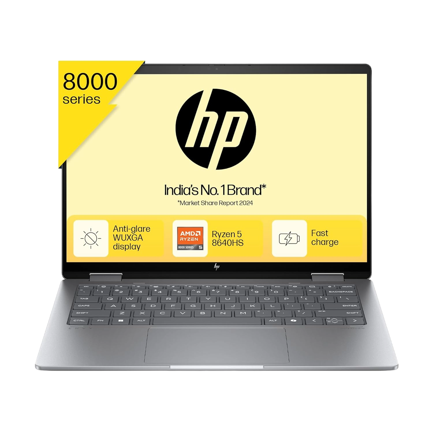 HP Envy x360, Enhanced by AI, AMD Ryzen 5 8640HS, 14-inch (35.6 cm), WUXGA, 16GB LPDDR5, 512GB SSD, AMD Radeon Graphics, 5MP IR Camera, Poly Studio (Win 11, MSO 2021, Silver, 1.44 kg), fa0038AU